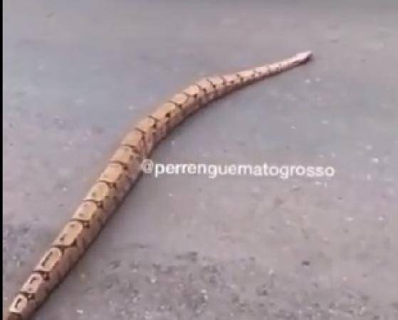 Um rapaz que passava pela Avenida do CPA neste domingo flagrou uma cobra de 2 metros atravessando no local.