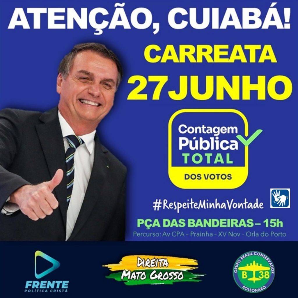 Está sendo organizado uma carreata para domingo(27) por manifestantes e instituições de direita em Mato Grosso que querem o voto impresso como o presidente Jair Bolsonaro.