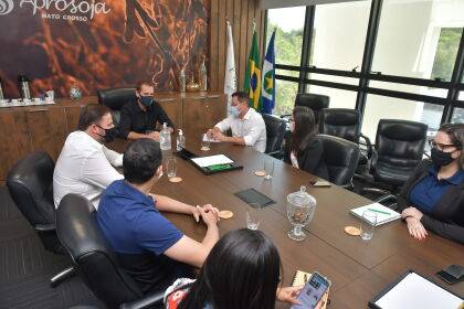 Acompanhado da deputada Janaína Riva (MDB), o primeiro-secretário da Mesa Diretora da Assembleia Legislativa, deputado Eduardo Botelho (DEM), se reuniu com a Diretoria-Executiva da Aprosoja, hoje, na sede da entidade. Na pauta, formatação da campanha de arrecadação de alimentos, que terá início a partir da semana que vem.