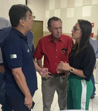 Eles foram vistos juntos conversando e até posando para fotos em uma reunião com o com presidente da legenda, deputado federal Carlos Bezerra e prefeitos da região do Araguaia.