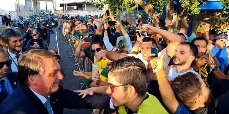 Ovacionado, Bolsonaro foi recebido no aeroporto Marechal Rondon por diversos gritos de ‘mito’ e fazendo referência à eleição deste ano, em que o chefe de Estado disputa a reeleição.
