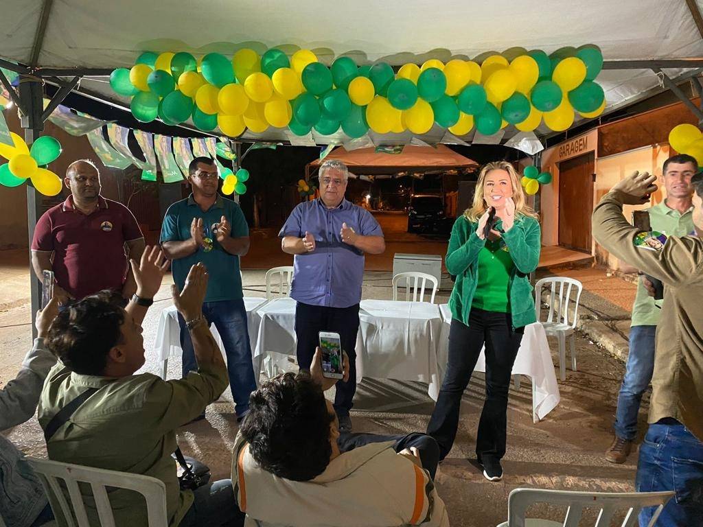 A candidata Marcia Pinheiro, da coligação ‘Para Cuidar das Pessoas’ - Federação Brasil de Esperança formada pelo PV, PT e PC do B, e do PSD, PP e Solidariedade, em reunião em Mirassol D'Oeste, na noite dessa segunda-feira (29), ouviu as demandas da população sobre a falta de investimentos do Governo do Estado na cidade e recebeu apoio dos presidentes das Câmaras Municipais de Rondonópolis e São José dos Quatro Marcos, Roni Magnani e Serginho Lima, respectivamente.