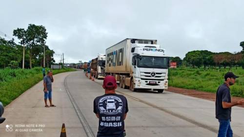 Desde as 6h que os caminhoneiros começaram as manifestações na BR-164, trecho próximo a Cuiabá tavando o trânsito...